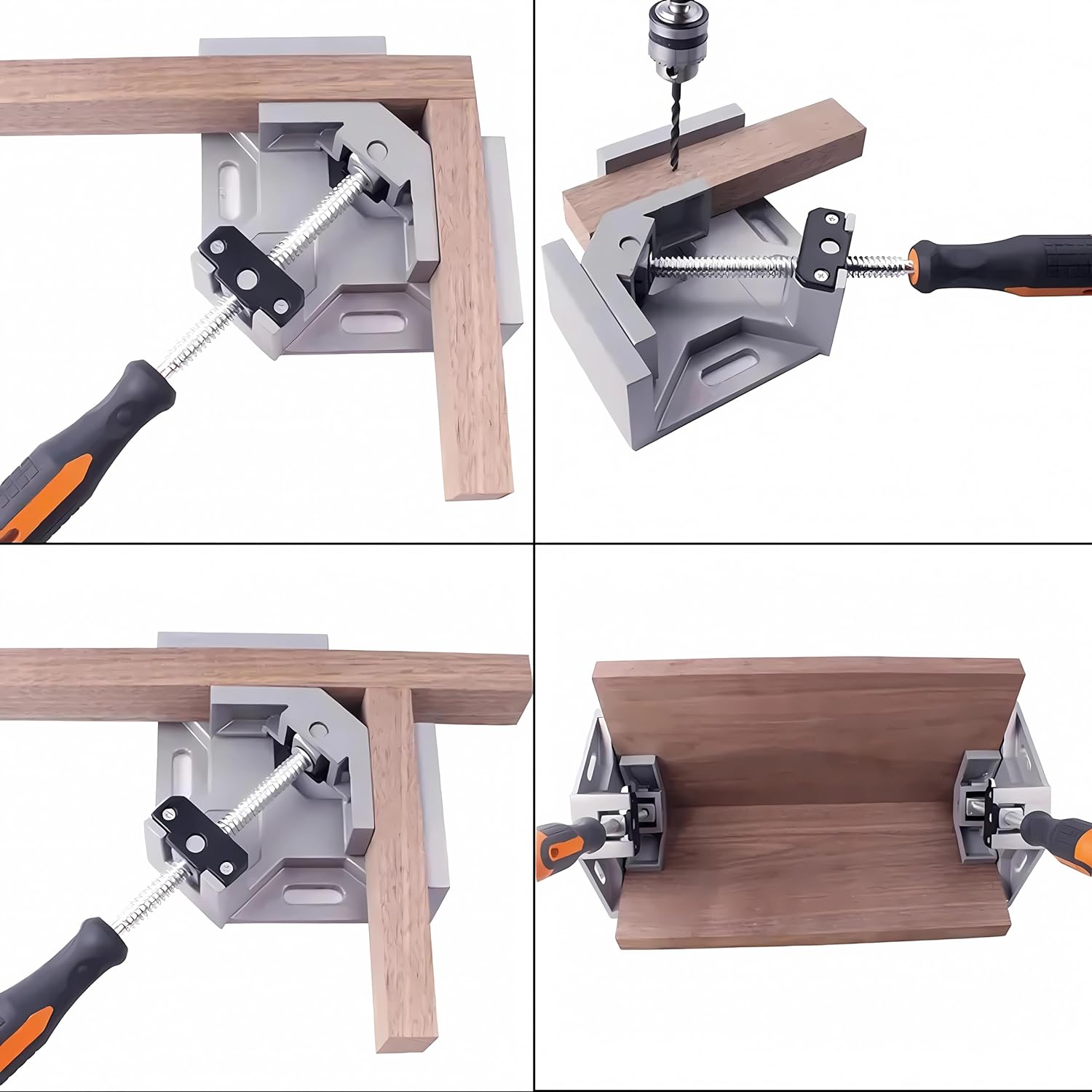 - A VALUABLE ASSISTANT: This double-handle 90-degree right angle clamp proves invaluable for cabinet or box-frame construction. When joining pieces at right angles, this durable aluminum alloy clamp serves as an additional hand, facilitating precise glue application.